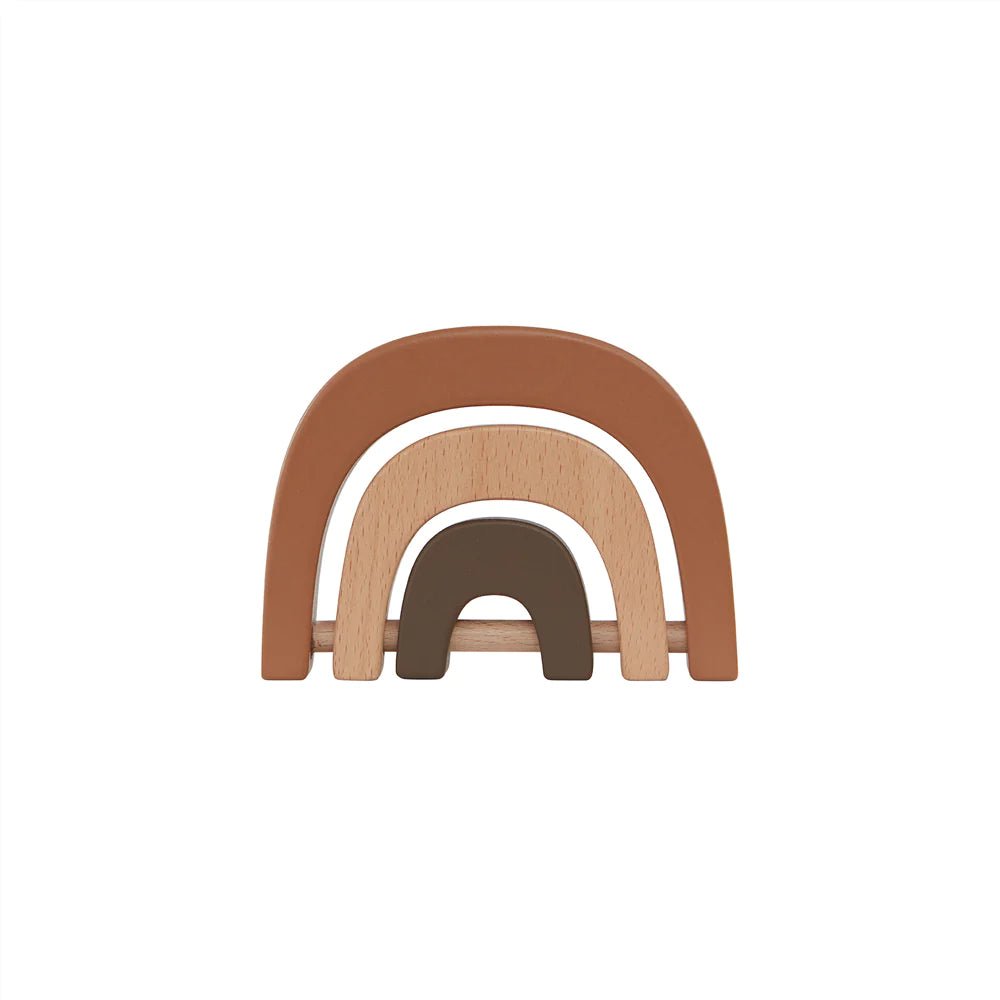 Elevate your child's playtime with the Nature-colored Rainbow Rattle, an exquisite addition to OYOY MINI's collection, boasting dimensions of H8.5 x L11.6 x W1.6 cm and a commitment to quality craftsmanship.
