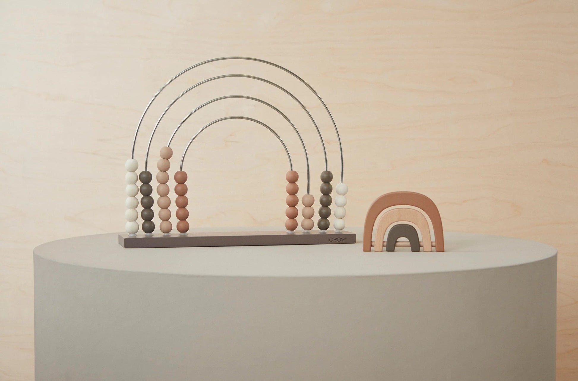 Engage and enhance your child's developmental journey by introducing the Rainbow Rattle from OYOY MINI. Crafted with precision from 100% beech wood, this meticulously designed toy stimulates the child's motor skills and senses with its calm and warm color palette.